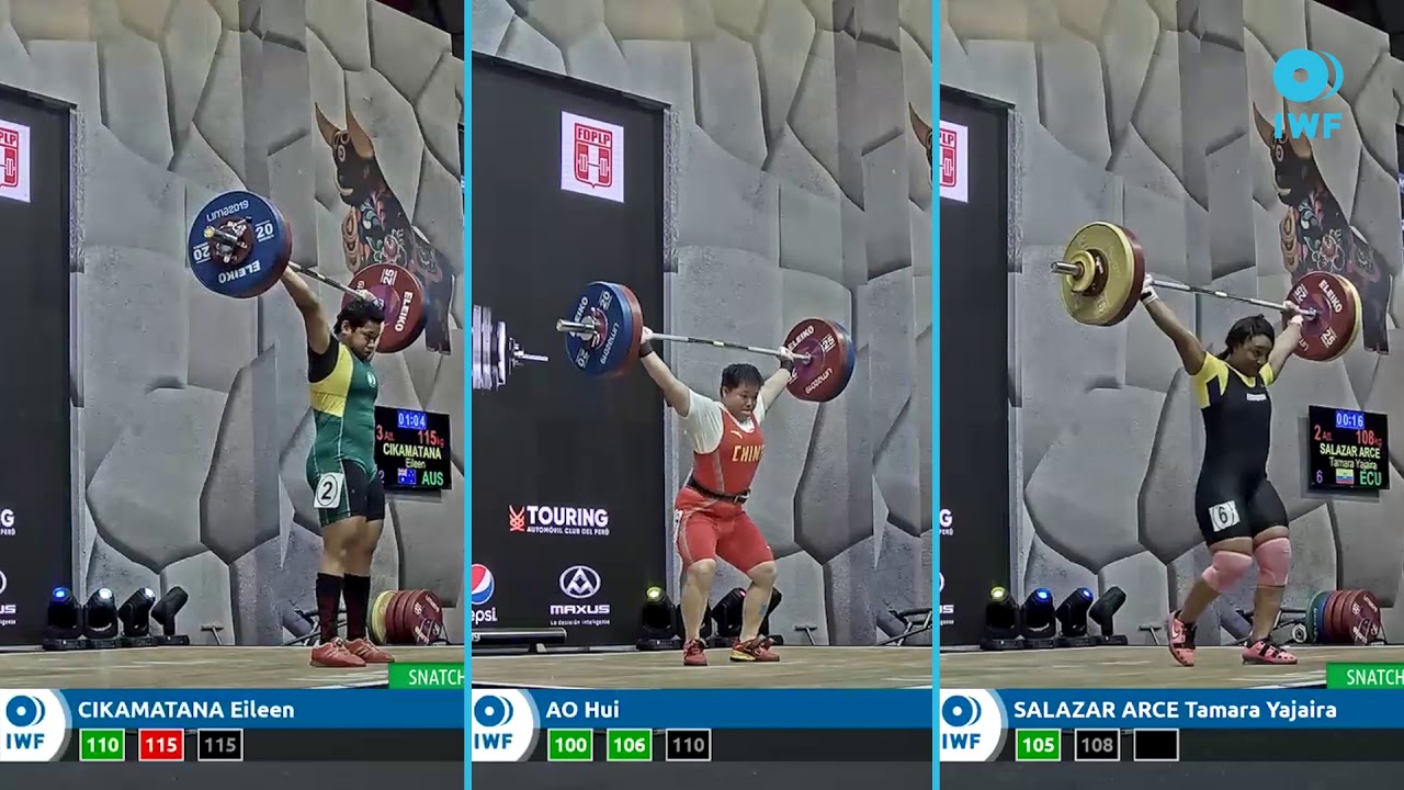 Snatch lifts comparison from the Women's 87KG category during the 2019 Grand Prix Lima.