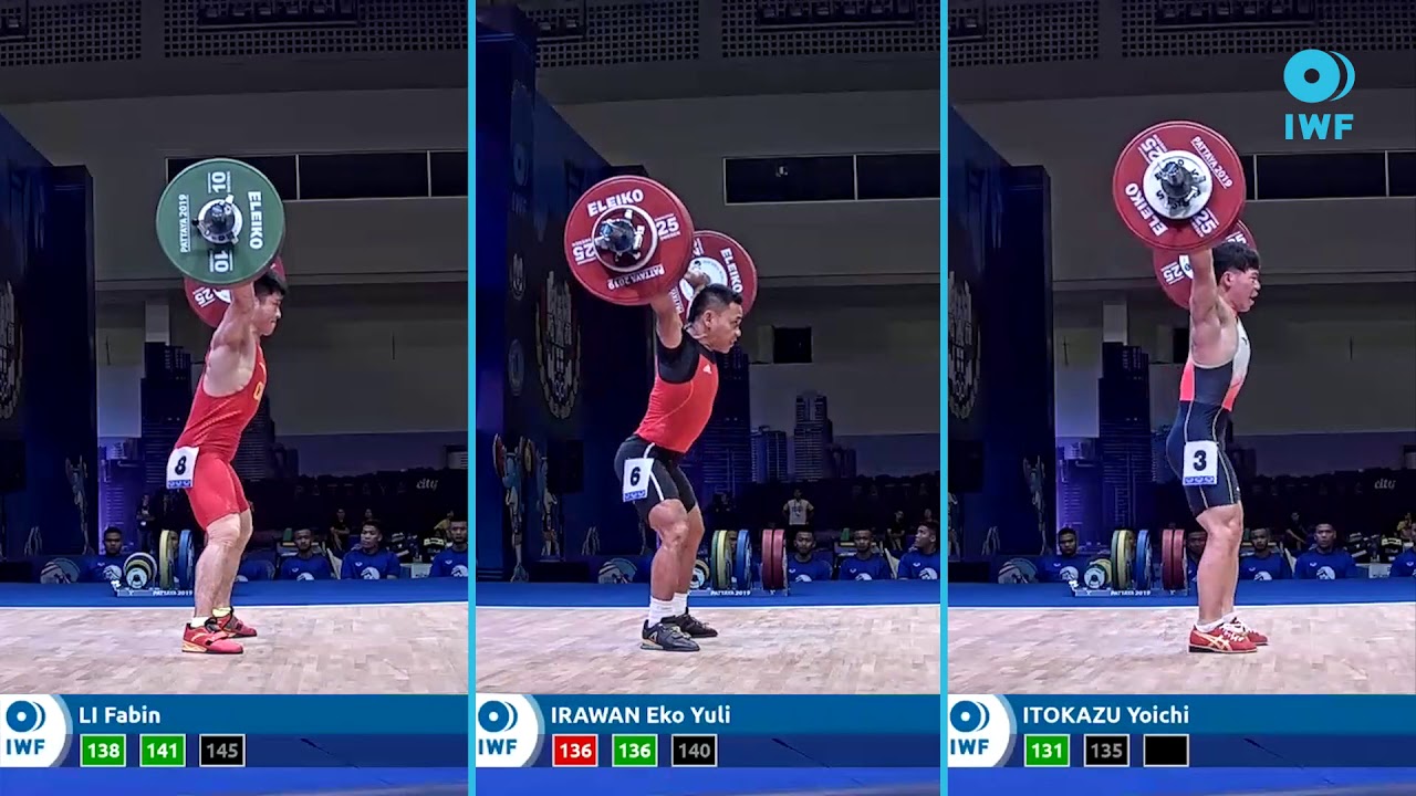 Snatch lifts comparison from the Men's 61kg category during the IWF World Championships in Pattaya, Thailand.